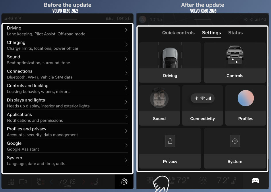 Màn hình trung tâm – 11.2 inch, giao diện Volvo Car UX mới được thiết dựa trên nhu cầu thực tế và phản hồi của người dùng nhằm mang đến những trải nghiệm trực quan và thuận tiện mà không gây mất tập trung khi lái xe