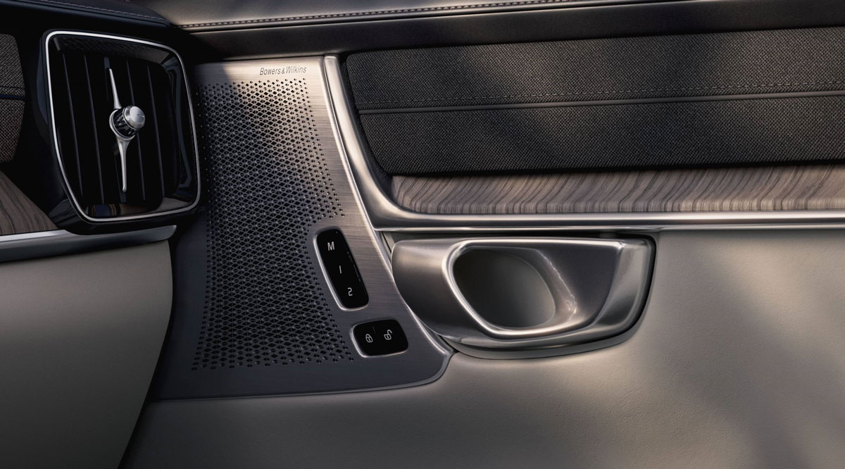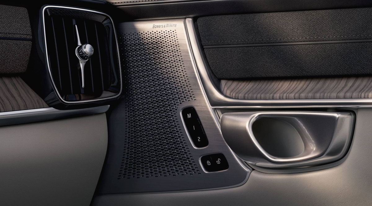 Màng loa Bowers & Wilkins – thiết kế lại tinh tế & hiện đại hơn. Volvo sử dụng tấm lưới kim loại phay laser mảnh hơn, với mô-típ hoa văn sóng âm mô phỏng tần số nhạc – vừa đẹp mắt, vừa cho âm thanh lan tỏa tự nhiên hơn.