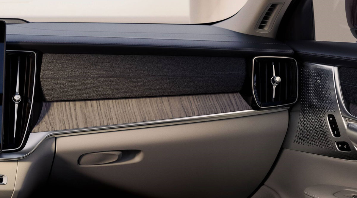 Toàn bộ táp-lô và tapi cửa được ốp gỗ thật Open-Pore Natural Ash. được xử lý bằng công nghệ mài mờ thủ công, giữ nguyên vân gỗ tự nhiên thay vì phủ sơn bóng. Volvo muốn người lái “cảm nhận vật liệu thật”, không phải lớp bóng bẩy nhân tạo.